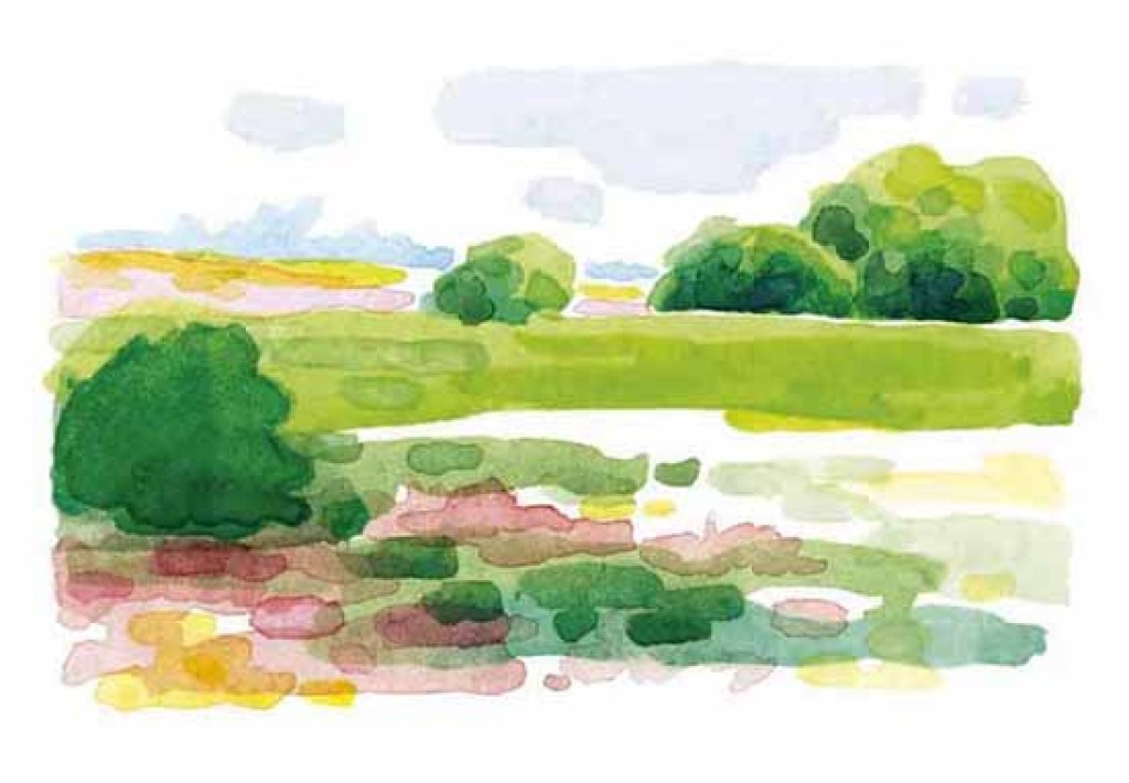 I engene vokser vilde græsser og blomster dér hvor de bedst kan, og breder sig hvor det er muligt. Det giver motiver egnet til at male: Farveflader i mange farver og nuancer.