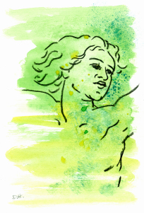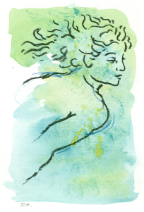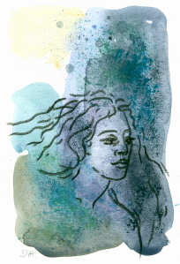 Nymfer, muser og guder blev min inspirationskilde til denne serie i akvarel, en maleteknik som var velegnet til at få den flygtige, mytiske verden frem på papiret.