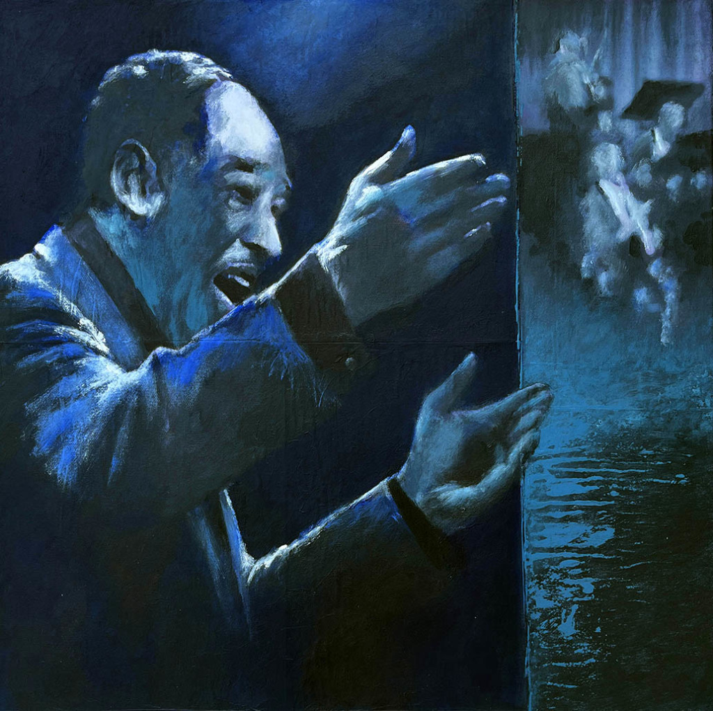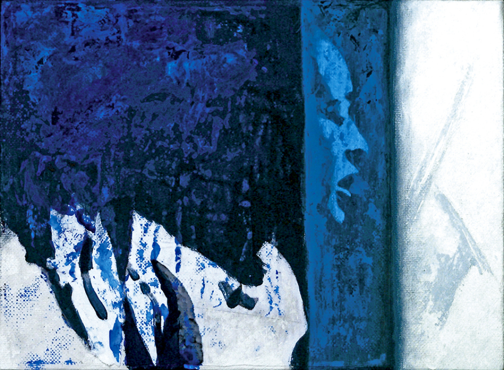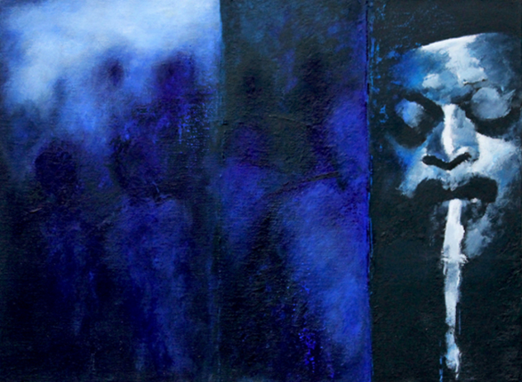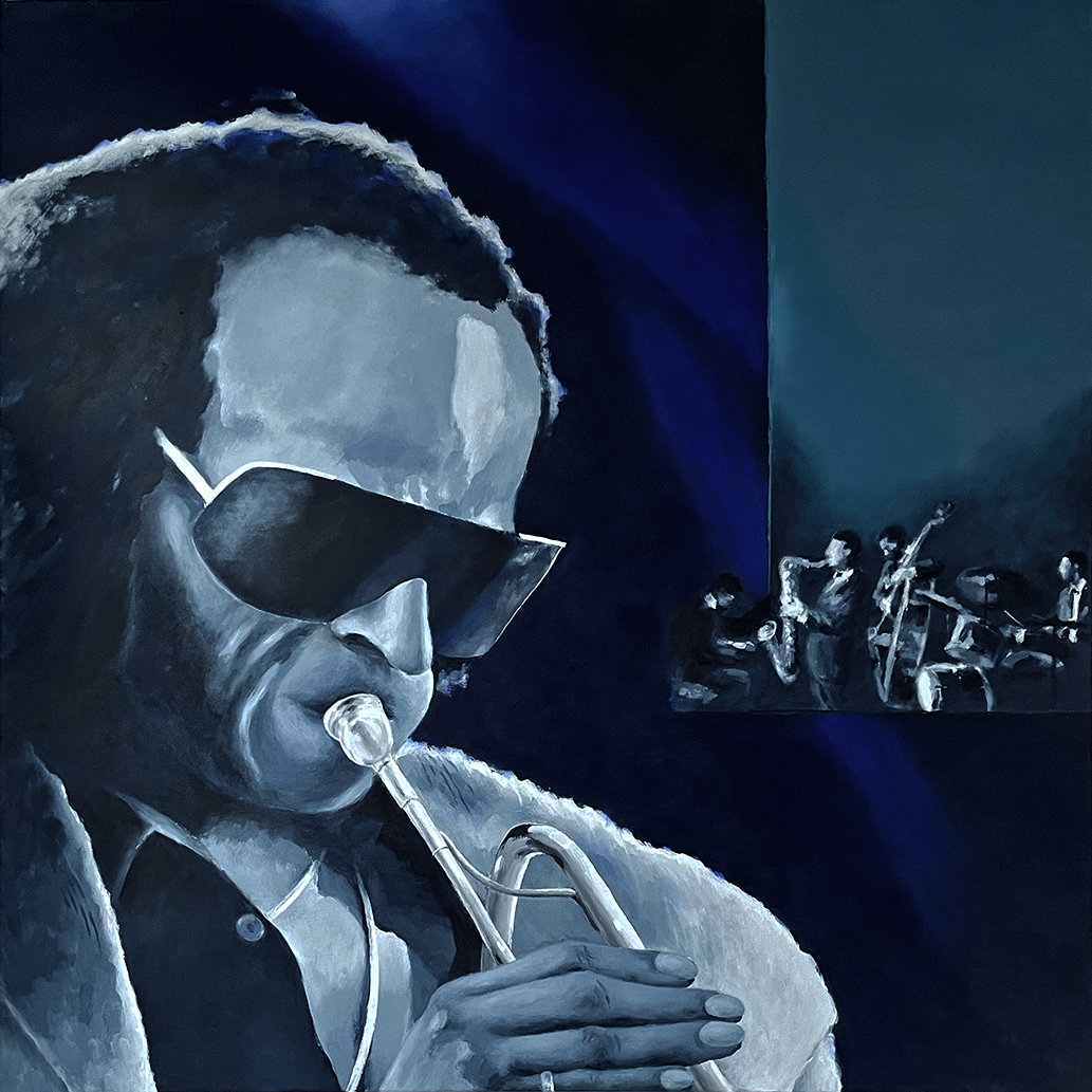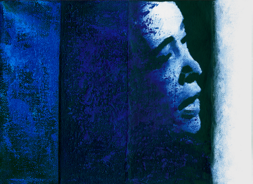 Jeg valgte at male Billie Holliday . Billie er ikke blues sangerinde, men jeg valgte alligevel farven blå for at få aftenstemning, og for at fange den melankolske lyd i hendes sange.